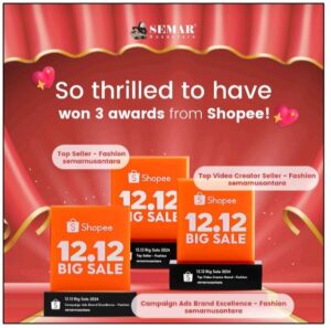 Penghargaan Shopee 12.12 Big Sale diberikan kepada Semar Nusantara atas keberhasilannya mencatat angka penjualan tertinggi di kategori fashion selama 12.12 Big Sale berlangsung. Prestasi ini mencerminkan kepercayaan pelanggan terhadap kualitas produk dan layanan yang ditawarkan.