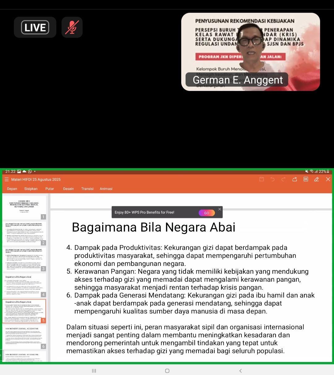 Dari perpektif kebijakan publik dan HAM, aktivis jaminan sosial pemerhati disabilitas dan yang juga direktur Lembaga Analis Kebijakan Publik dan Perlindungan Sosial (Elkape) German E. Anggent, M. Comm. Dev., memaparkan bahwa kemerdekaan adalah hal yang mutlak, termasuk kemerdekaan masyarakat dalam memperoleh pangan bergizi sebagai hak asasi yang tidak boleh ditawar.