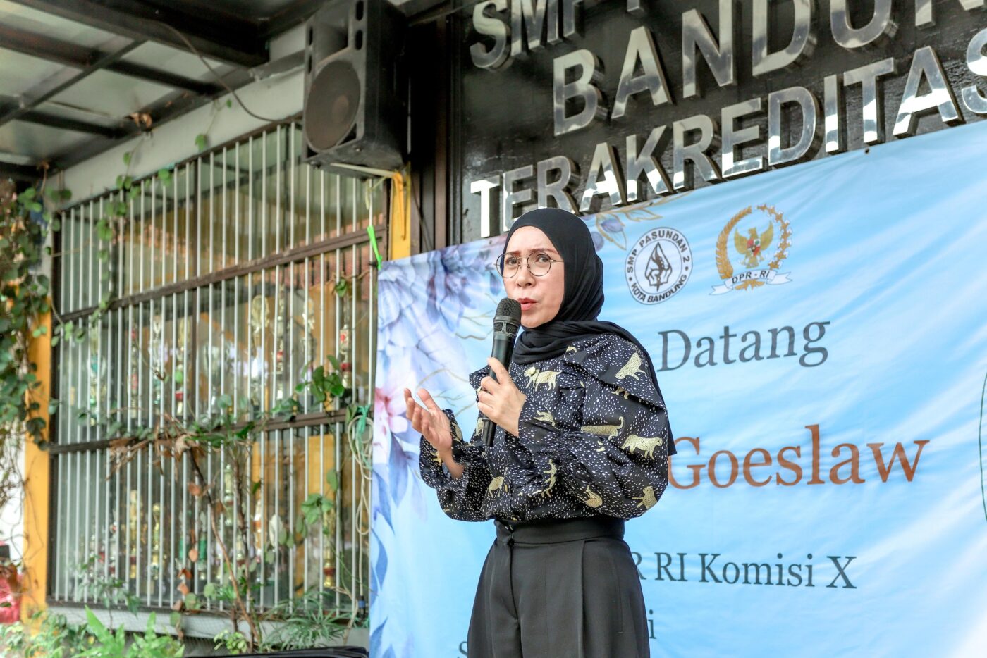 Selain itu, Melly Goeslaw menyampaikan kabar gembira bahwa SMP Pasundan 2 lolos program revitalisasi sekolah dari Kementerian.