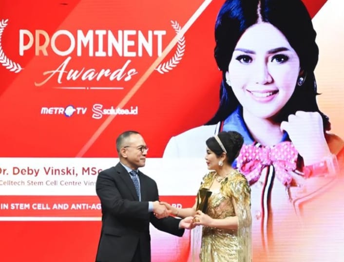 Wanitaindonesianews.com, JAKARTA – The Queen of Anti aging dan Stem Cell , Prof. Dr. Deby Vinski, MSc., PhD menerima penghargaan Pioneer in Stem Cell and Anti-Aging Medicine Award di Prominent Awards 2025.