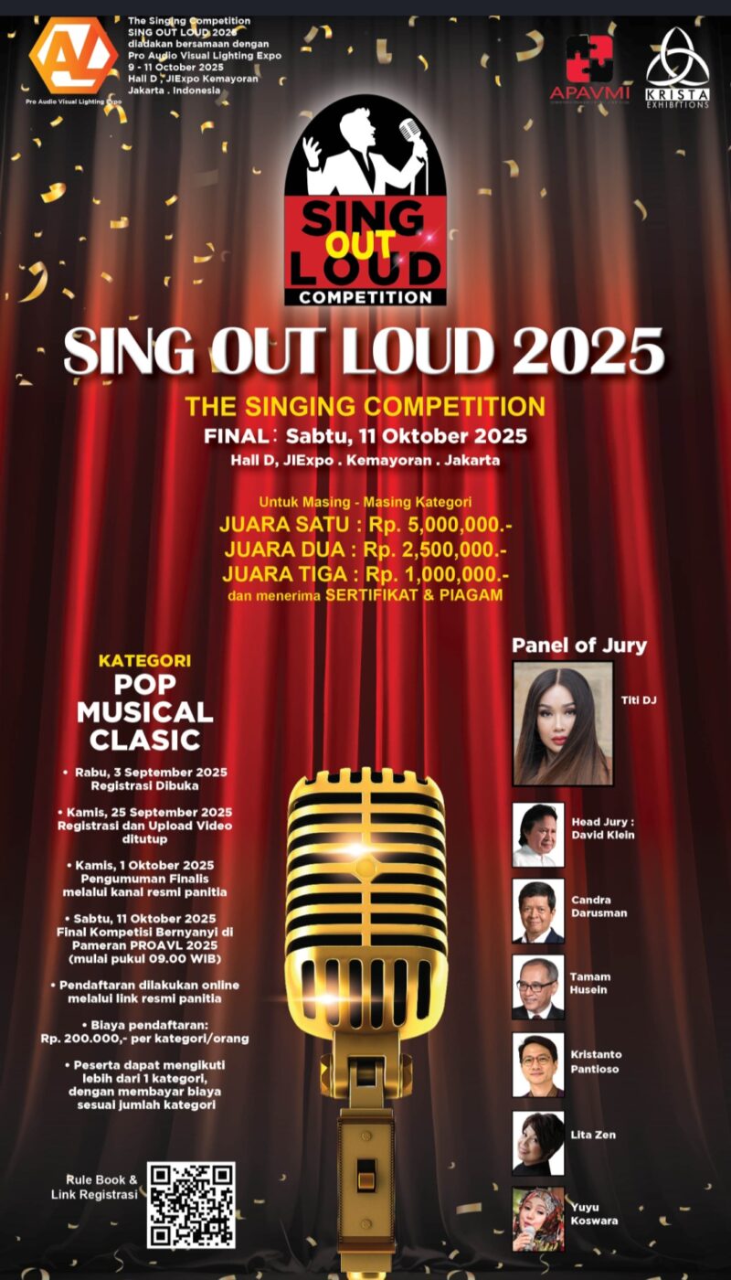 Wanitaindonesianews.com, JAKARTA–SING OUT LOUD di pameran PRO AVL 2025 Krista Exhibitions menghadirkan kompetisi menyanyi yang paling dinanti tahun ini, memberikan kesempatan bagi talenta vokal muda maupun profesional untuk menampilkan suara emas mereka.