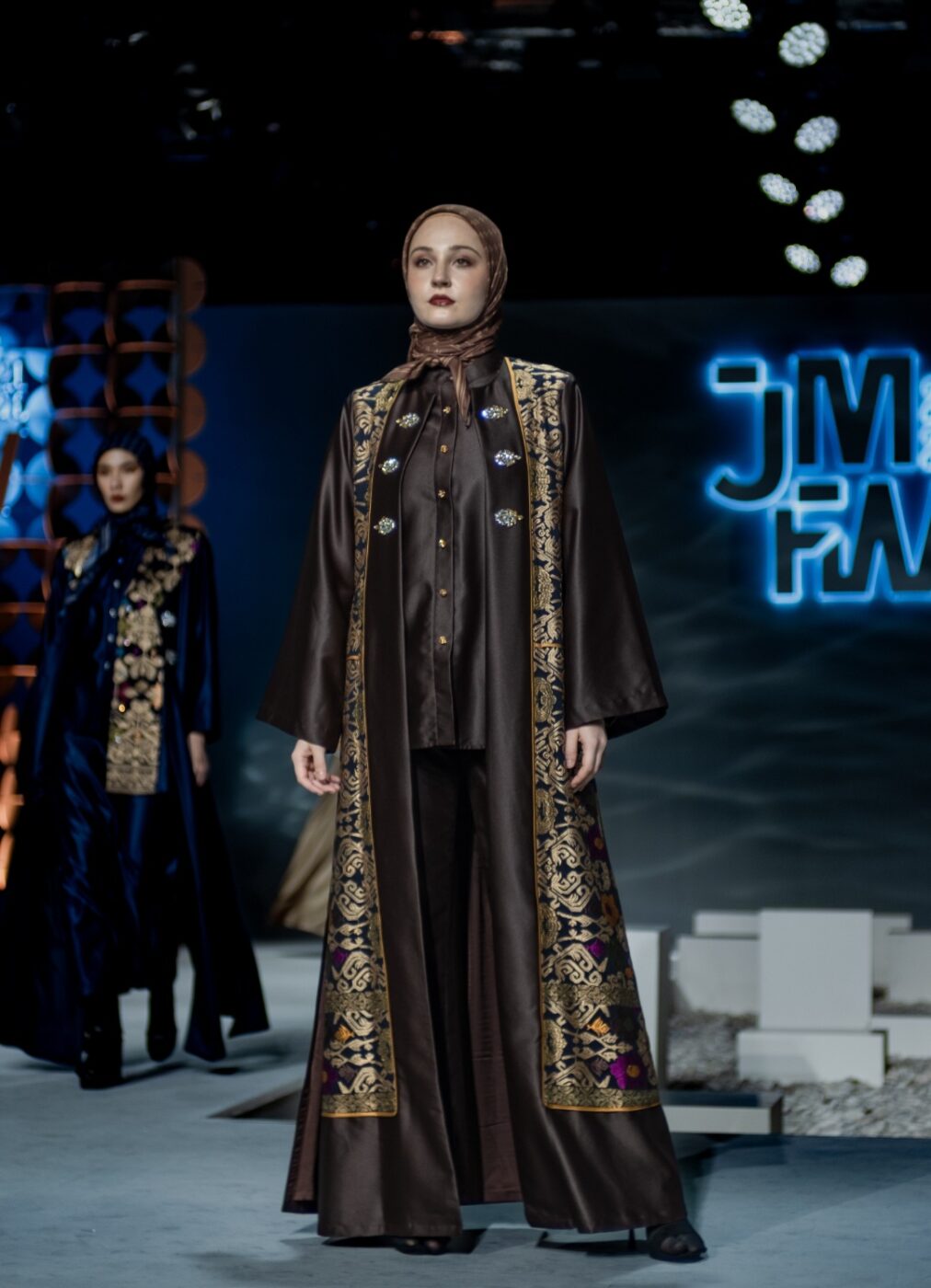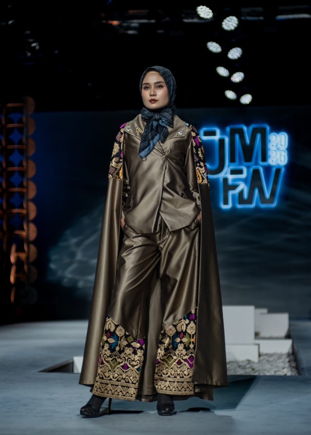 Lebih jauh Nina menjelaskan di panggung Jakarta Muslim Fashion Week (JMFW) 2026 yang mengusung tema “Essential Lab – Crafting the Future of Modest Fashion for Every Lifestyle”, koleksi Calyara menampilkan kemewahan dan keanggunan khas Nusantara melalui Kamen Songket Bali sebagai bahan utama.