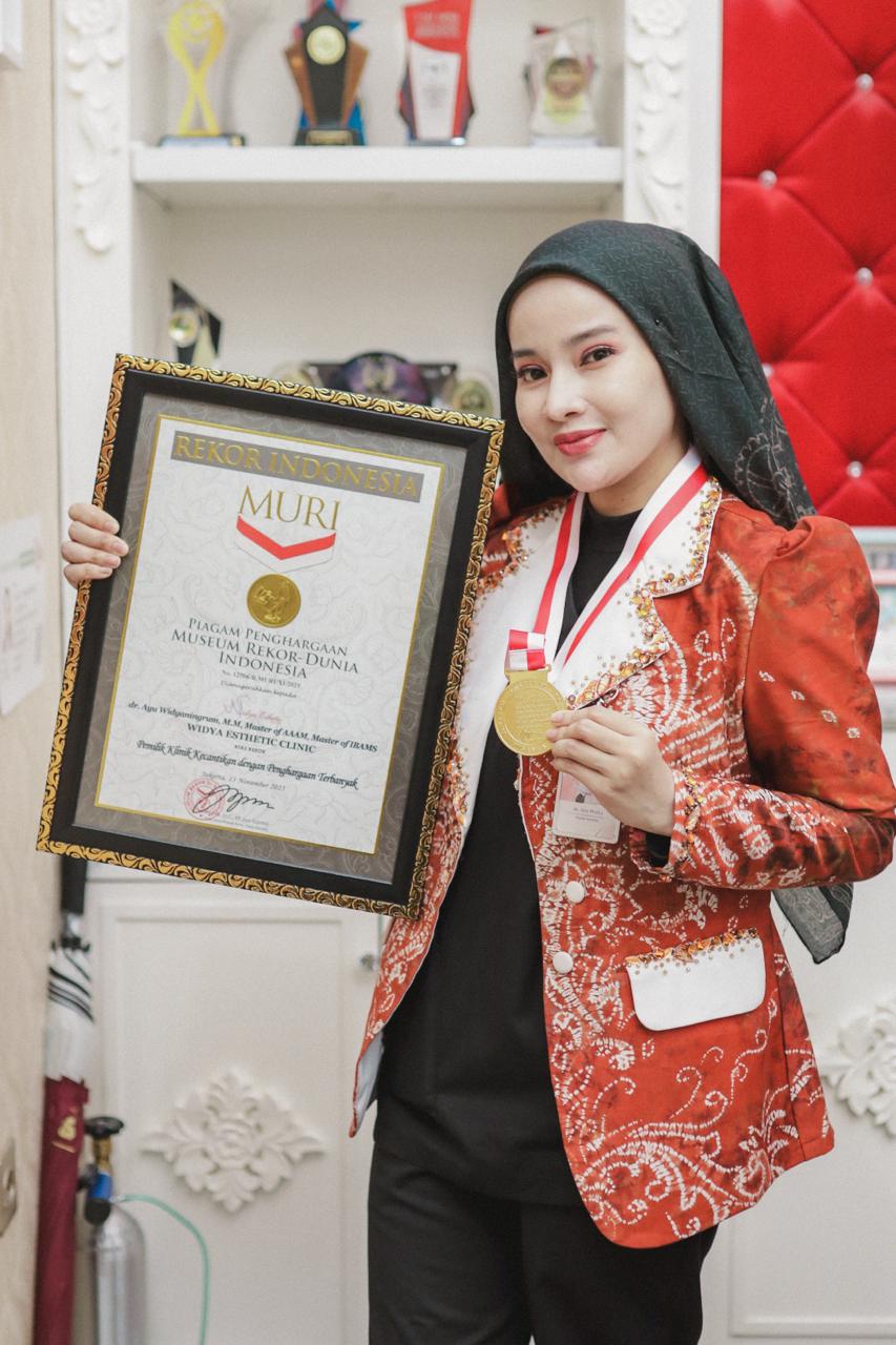 Wanitaindonesianews.com, BANJAR – dr. Ayu Widyaningrum, M.M., Master of AAAM, Master of IBAMS, pemilik Widya Esthetic Clinic asal Kalimantan Selatan berhasil meraih Rekor MURI atas kiprahnya di dunia kesehatan. Yang membanggakan dokter cantik ini menerima 2 penghargaan sekaligus untuk kategori yang berbeda. Apa saja?