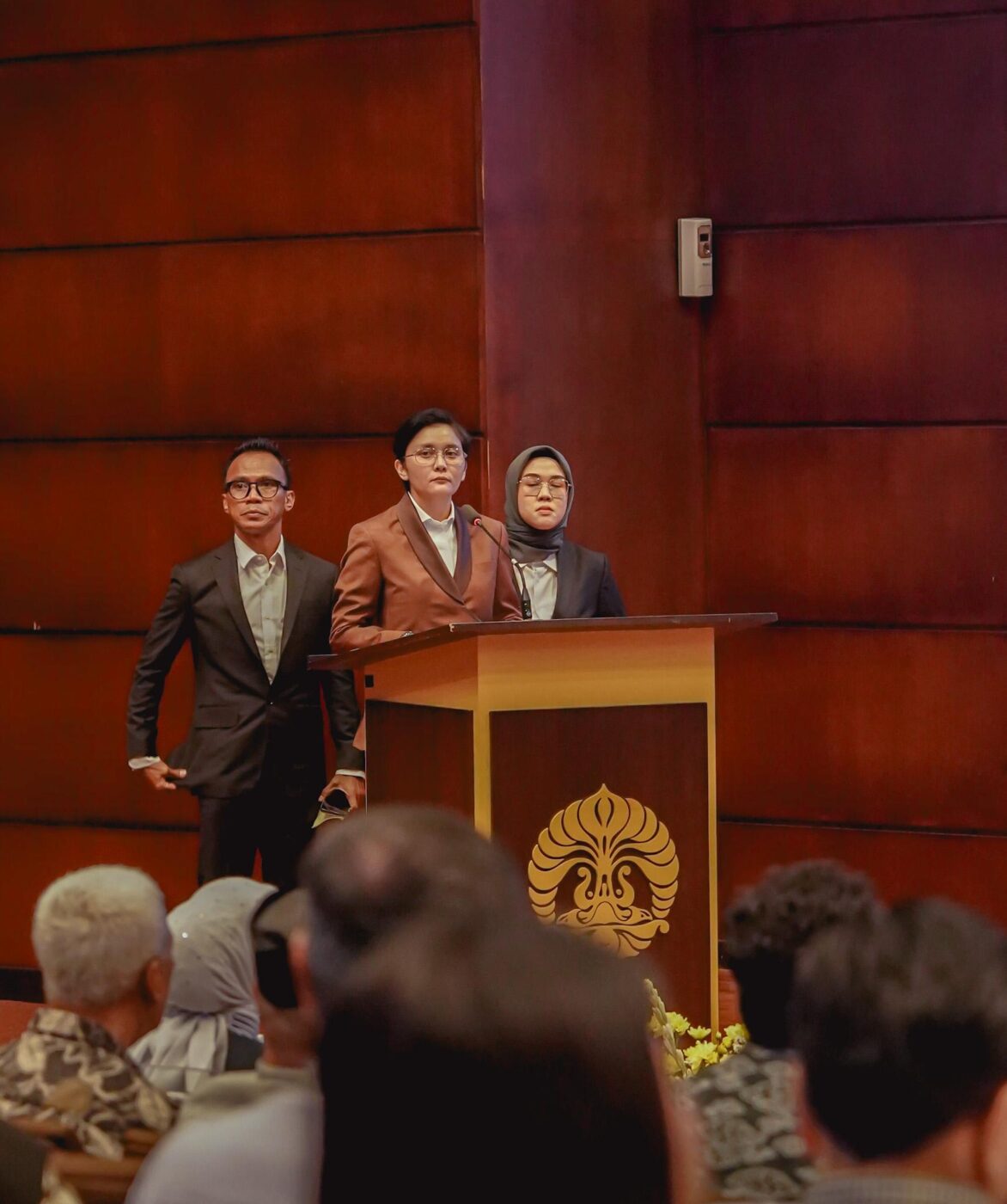 Dewan penguji turut diisi oleh sejumlah akademisi dan praktisi nasional, antara lain Prof. Yon Machmudi, S.S., Ph.D, Prof. Dr. I Ketut Surajaya, S.S., M.A, Muhammad Syaroni Rofii, S.H.I., M.A., Ph.D, Dr. Ahmad Ibrahim Badry, S.Fil., M.Hum, CertDA, serta Irjen Pol (Purn) Dr. Benny Jozua Mamoto, S.H., M.Si.